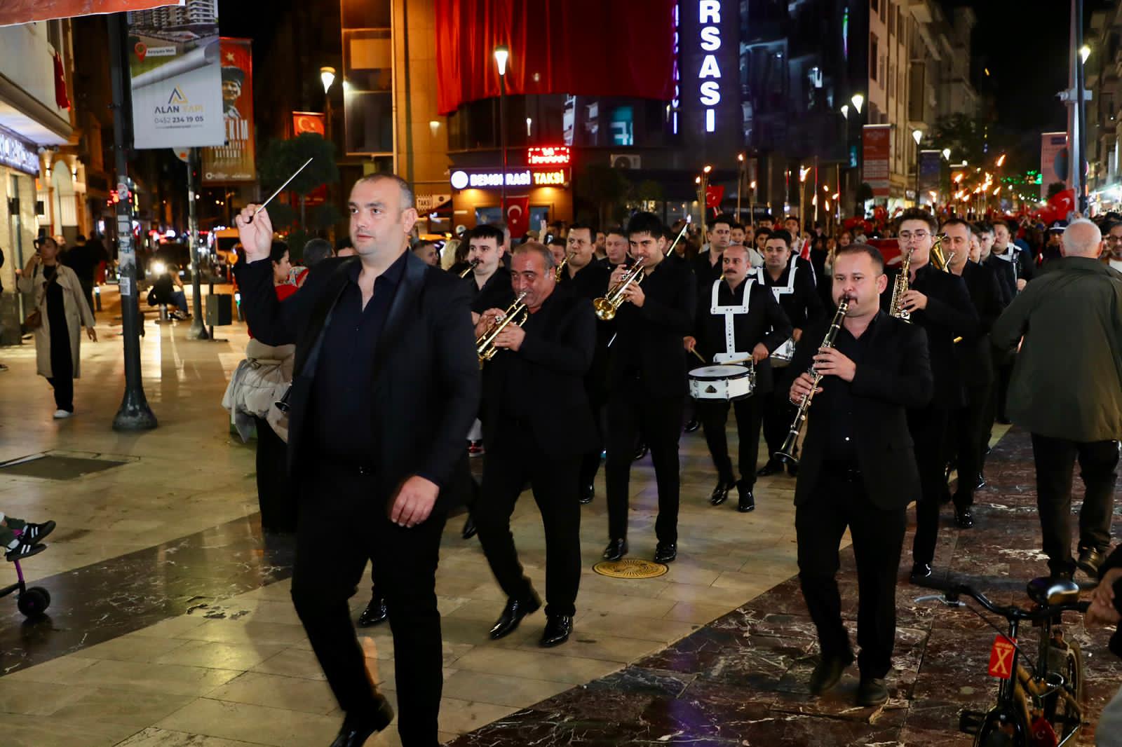 Vali Erol, protokol üyeleri ve vatandaşlar ellerinde Türk bayrakları ve meşale ile Ordu Büyükşehir Belediyesi Kent Orkestrasının ‘Cumhuriyet’ ezgileri eşliğinde, Köprübaşı Ceren Özdemir Meydanı’dan yürüyüşe başlayarak, İlkadım Anıtı önüne kadar yürüdü.