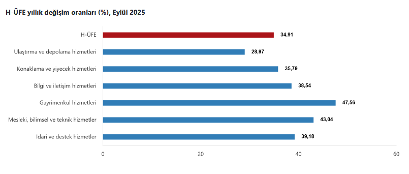 TÜİK – Hizmet üretici fiyatları Eylül’de yıllık yüzde 34,91, aylık yüzde 0,21 yükseldi