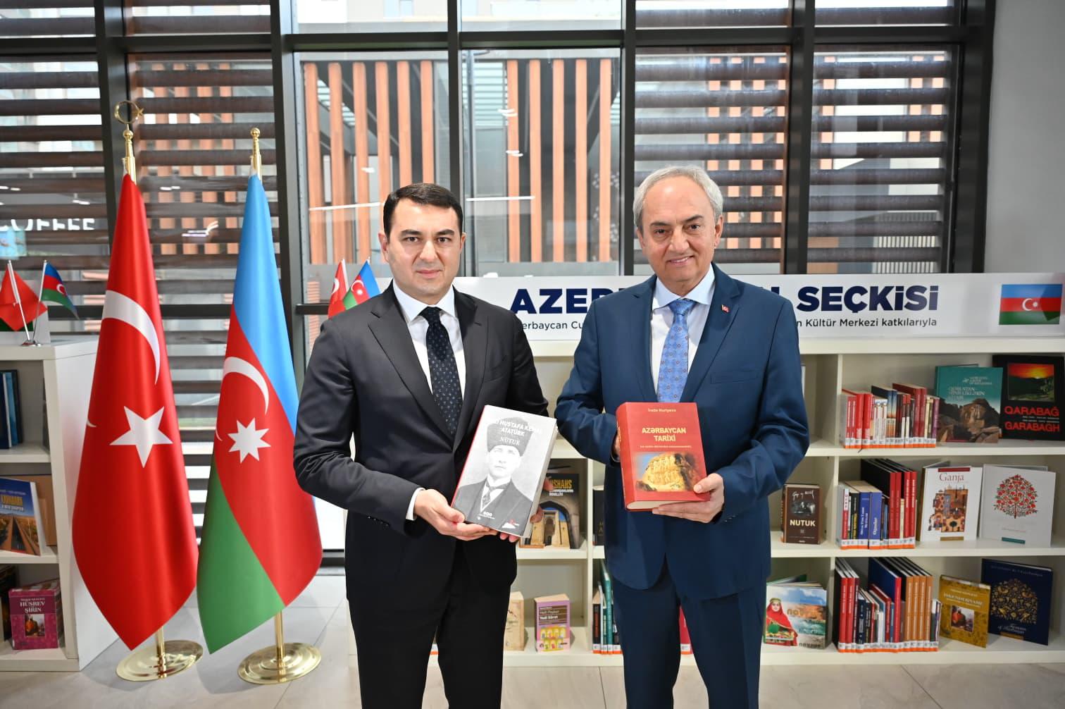 Nadir Eserler Kütüphanesi'nde Azerbaycan bayrağında mavi-yeşil-kırmızı renkler ile simgelenen “Türkleşmek, İslamlaşmak, Muasırlaşmak” ilkesini formüle eden Azerbaycan’ın önemli şahsiyetlerinden Hüseyinzade Ali Bey'in ıslak imzalı, Atatürk'ün arkadaşlarından Kazım Nami Bey'e kendi el yazısı ile ithaf ettiği kitap Azerbaycan heyeti tarafından ilgi gördü.