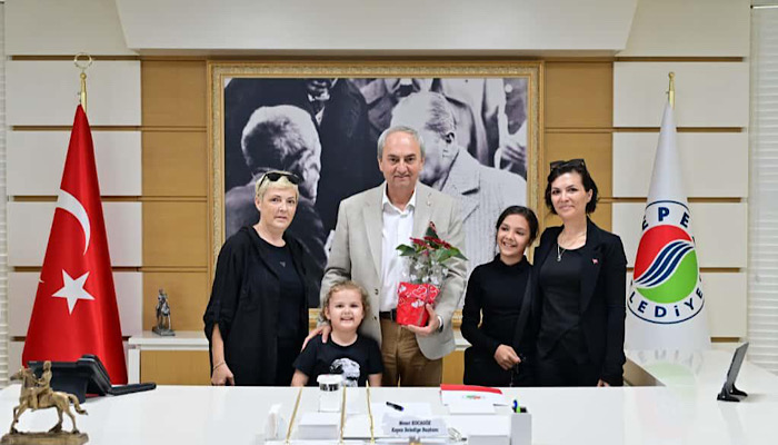 Ziyaret sonunda Defne Duman, annesi Kübra Duman ile birlikte Başkan Kocagöz’e bir Atatürk çiçeği hediye etti.