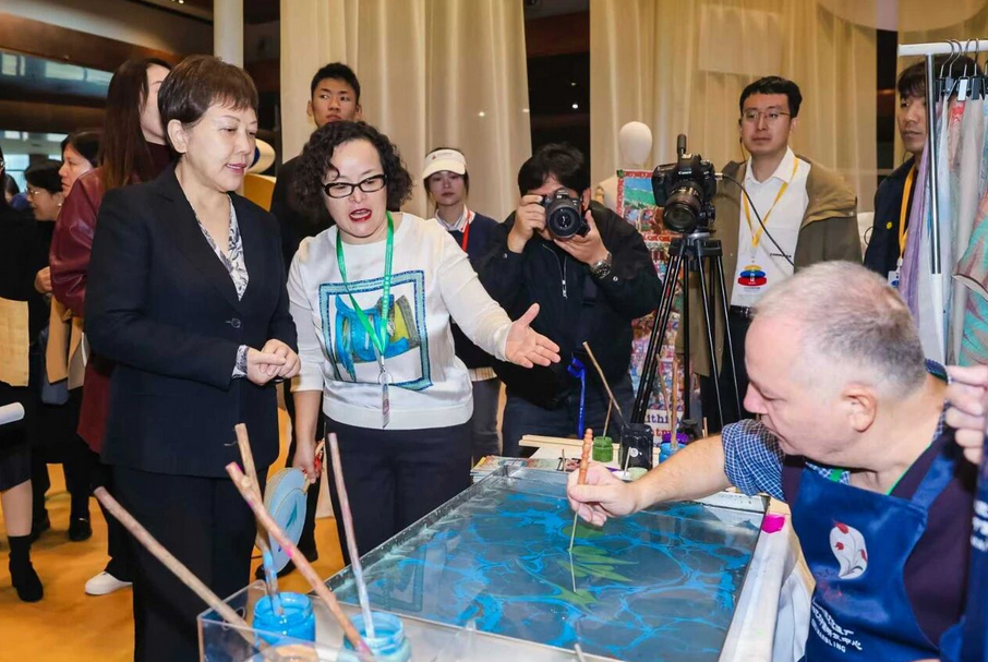 Beijing Belediye Başkan Yardımcısı Sima Hong da Ebru standını ziyaret etti ve iki ustanın yönlendirmesiyle Ebru yapmayı deneyimledi. Hong’un performansını bir çok kişi izledi. Türk geleneksel sanatı ile Çin sanatı Somut Olmayan Kültürel Miras Haftası’nda güzel bir buluşma gerçekleştirdi.