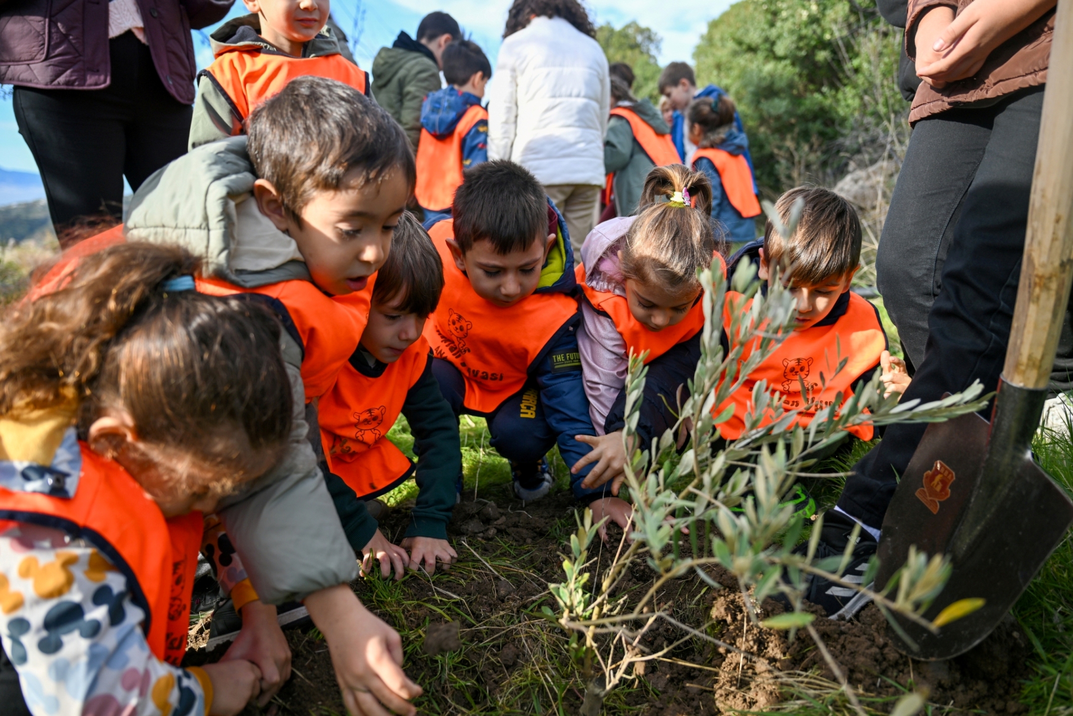 Bornova Belediyesi, Dünya Zeytin Ağacı Günü kapsamında öğrencilerin katılımıyla Kayadibi’ndeki tarım arazisine 200 zeytin fidanı dikti.