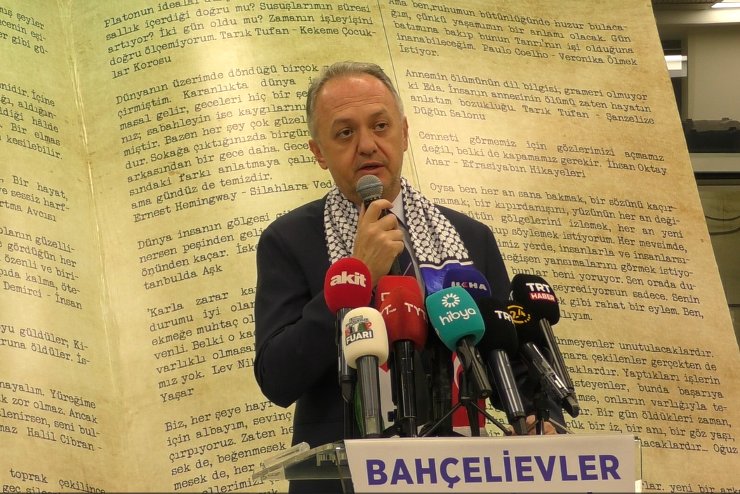 Bahçelievler Belediye Başkanı Hakan Bahadır, fuarın ilçeyi bir kültür merkezine dönüştürdüğünü belirterek, konuşmasında “Burası yazarlar ile okurların buluşma noktasıdır. Kitaplar insanlığın ortak hafızasıdır. Bizler de Bahçelievler’de bu hafızayı komşularımızla buluşturmaya devam ediyoruz. Bu yıl fuarımız, aynı zamanda Gazze için büyük bir dayanışma hareketine dönüşüyor. Bahçelievler’den tüm dünyaya güçlü bir ses yükseltiyoruz: ‘Gazze için adalet, Filistin için özgürlük’” ifadelerine yer verdi.
