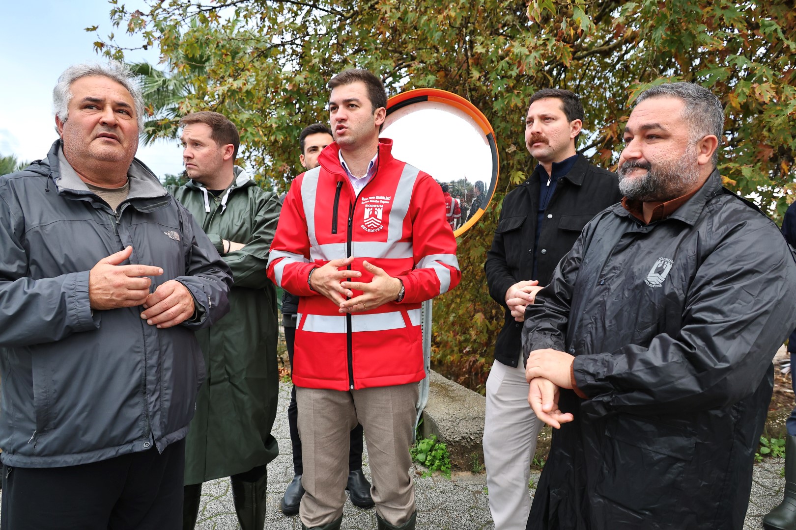 Basın açıklamasının ardından Başkan Tamer Mandalinci, beraberindeki başkan yardımcıları ve birim müdürleri ile birlikte yağıştan etkilenen bölgelerde incelemelerde bulundu.
