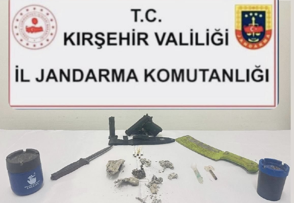 Aynı ilçede KOM Şube ve ilçe jandarma ekipleri tarafından uyuşturucu ticareti yaptığı değerlendirilen M.İ. ve F.M.’ye yönelik operasyon düzenlendi. Araçta ve ikametlerde yapılan aramalarda 2 adet uyuşturucu kullanma aparatı, 1 kurusıkı tabanca, 1 satır ve 1 kasatura ele geçirildi. Haciz kaydı bulunan araç yedieminde alındı.