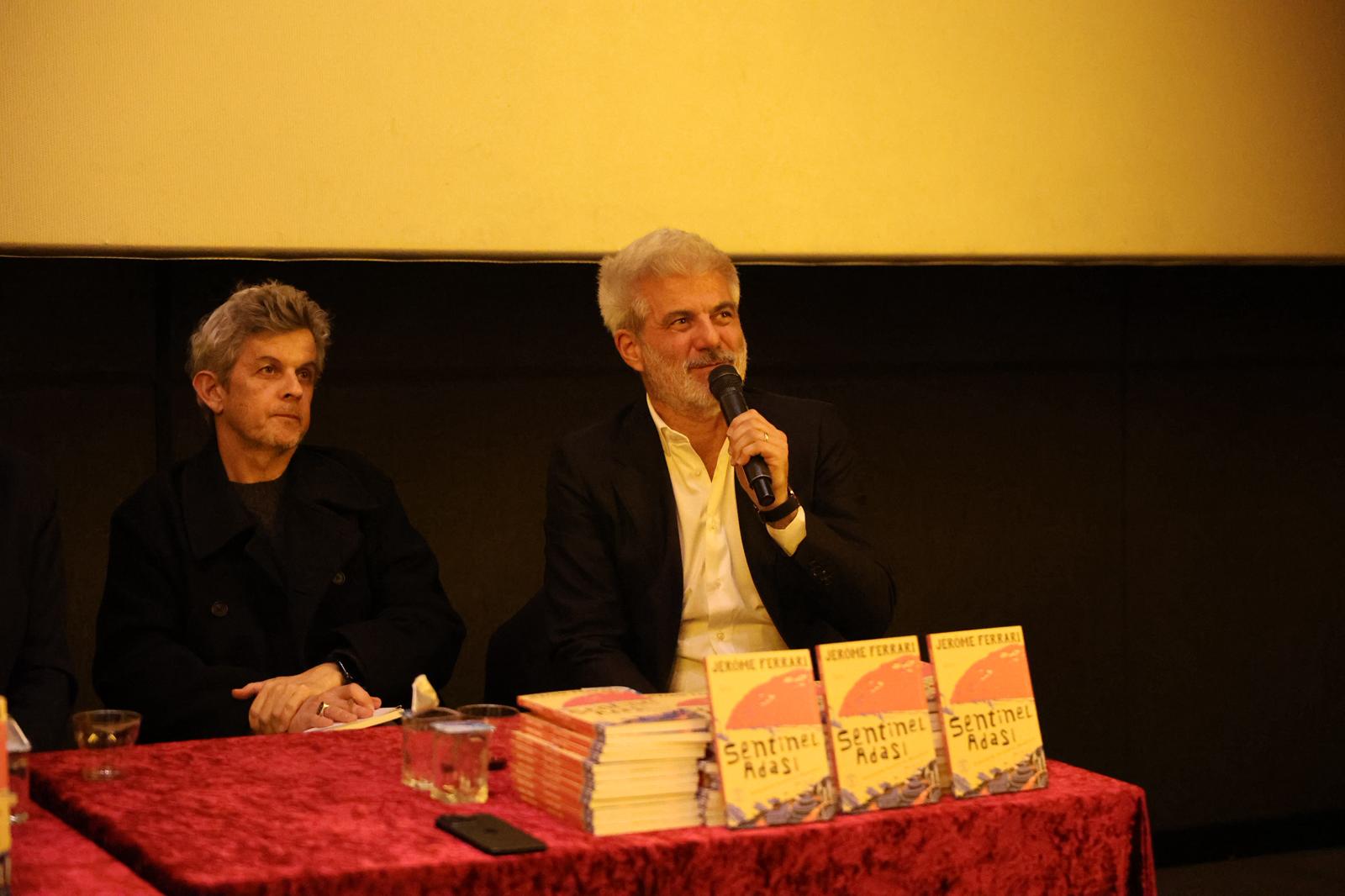 “Nord Sentinelle-Sentinelle Adası” kitabı ve A Son Image filmi üzerine gerçekleştirilen buluşmada Yönetmen Thierry de Peretti, Yazar Jerome Ferrari, Yazar Laurent Gaude, çevirmen Ebru Erbaş yer aldı.