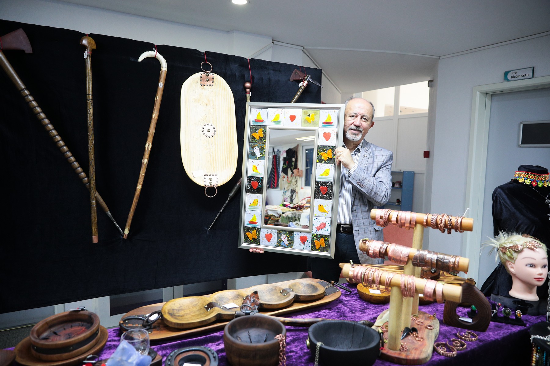 Yeni yıl sergisinde el sanatları, dekoratif ürünler, takı tasarımları, örgü triko çalışmaları, ahşap boyama, tekstil ürünleri ve yeni yıla özel hediyelikler sergilendi ve satışa sunuldu.