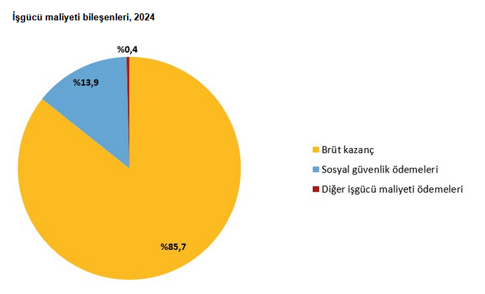 İşgücü maliyeti içinde brüt kazancın payı yüzde 85,7, sosyal güvenlik ödemelerinin payı yüzde 13,9 ve diğer işgücü maliyeti ödemelerinin payı yüzde 0,4 olarak gerçekleşti.