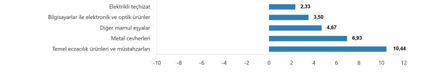 Ana sanayi gruplarının yıllık değişimleri; ara mallarında yüzde 24,28 artış, dayanıklı tüketim mallarında yüzde 33,03 artış, dayanıksız tüketim mallarında yüzde 30,81 artış, enerjide yüzde 27,06 artış ve sermaye mallarında yüzde 29,79 artış olarak gerçekleşti.