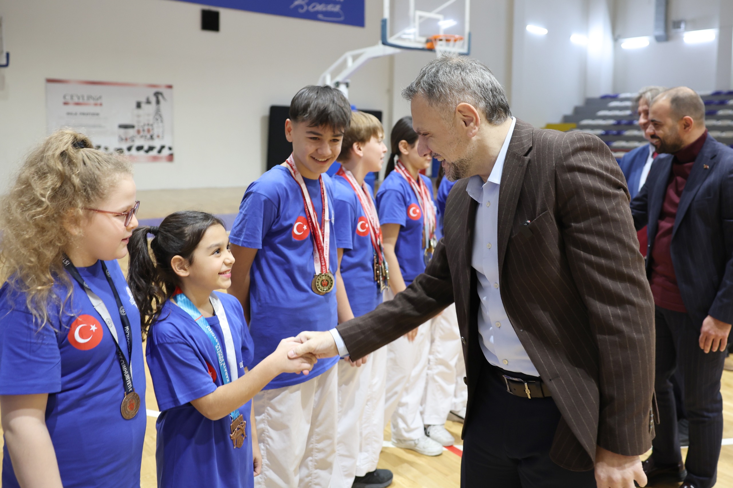 Ziyaret sırasında sporculara çeşitli hediyeler takdim eden Akın, “Attığınız her adımda, çıktığınız her müsabakada yalnız değilsiniz; biz tüm imkanlarımızla yanınızdayız. Siz hayallerinizin peşinden kararlılıkla koşun; biz o yolları açmaya devam edeceğiz” dedi.