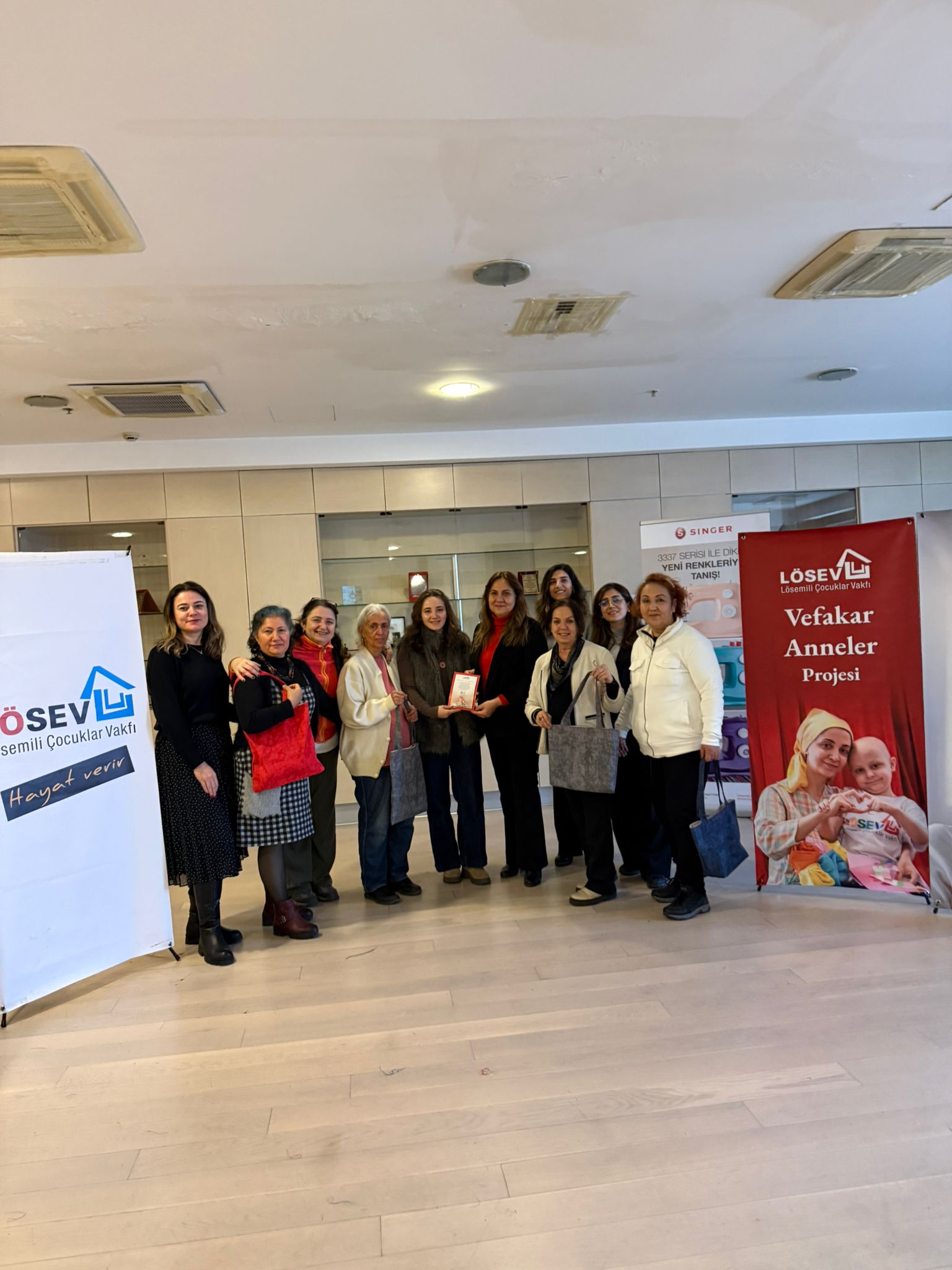 LÖSEV İstanbul Anadolu Yakası irtibat ofisi, Annemin De Yüzü Gülüyor Projesi kapsamında, Anne Uğraş Atölyesi’ndeki annelere, Hayat Bağları Projesindeki yetişkin kanser hastalarına ve çocuğu hala tedavi gören ya da hastalığı yenmiş olan Vefakar Anneler ile bez çanta yapım atölyesi gerçekteştirdi.