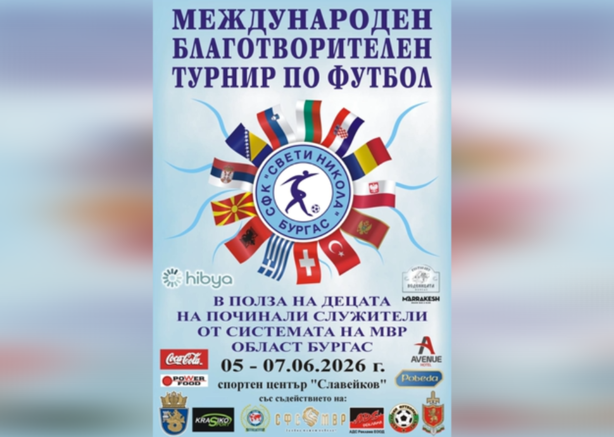 Bulgaristan’ın Burgas Bölgesi İçişleri Bakanlığı’nda görev yaparken vefat eden personelin 18 yaş altındaki çocuklarına destek amacıyla, 5–7 Haziran 2026 tarihlerinde Burgas’taki Slaveykov Spor Merkezi’nde uluslararası halı saha futbol turnuvası düzenlenecek.