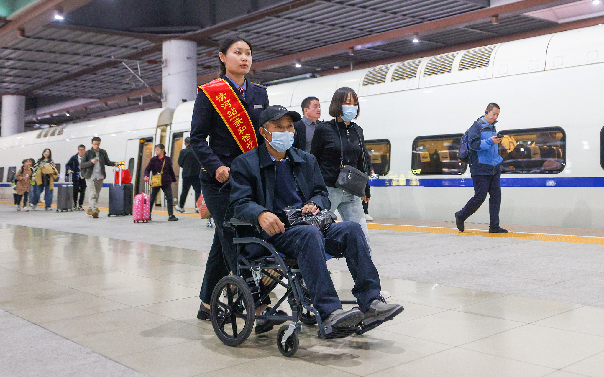 Hankou İstasyonu Nöbetçi Müdürü Xi Shanshan, “Özel ve önemli yolculara bire bir perona kadar uğurlama ve peronda karşılama hizmetleri sunuyoruz.” dedi
