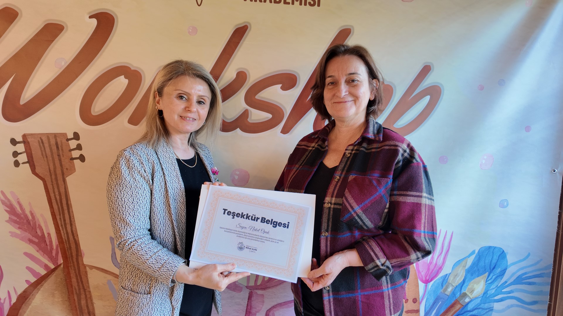 Program sonunda workshopun eğitmenliğini üstlenen Nüket Opak’a katkılarından dolayı teşekkür belgesi takdim edildi. Teşekkür belgesini, Sapanca Belediyesi Bayın Yayın ve Halkla İlişkiler Müdürü Emine Tarım tarafından verildi.