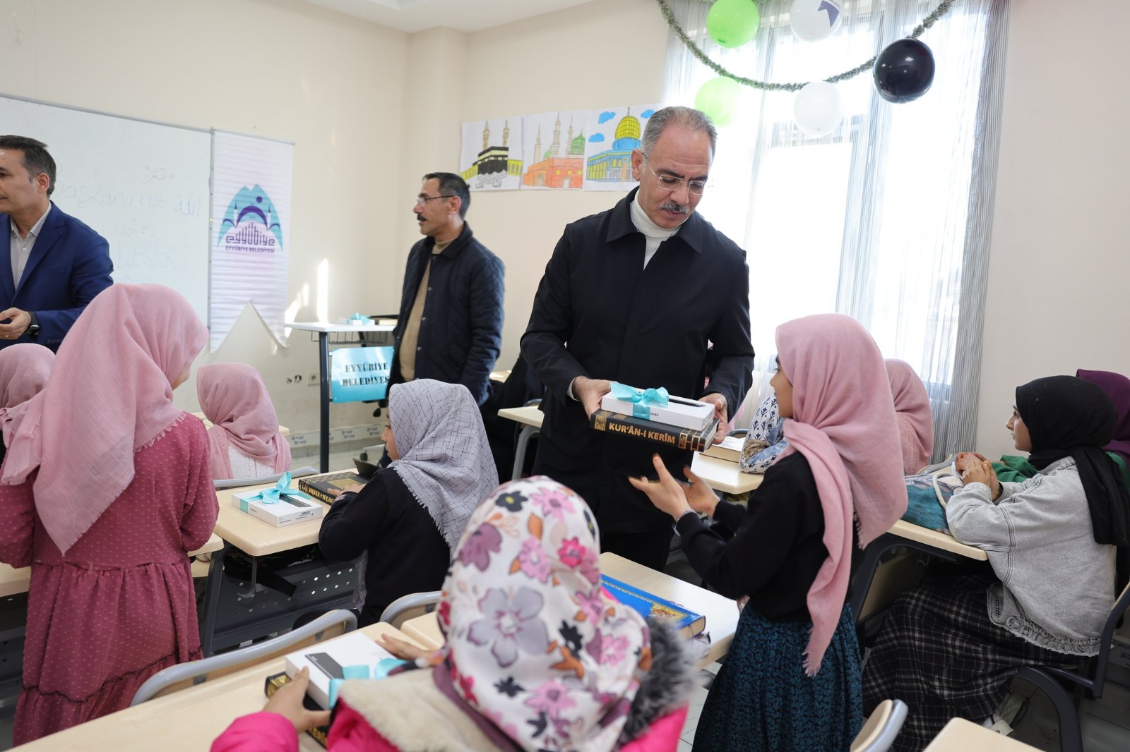 Şanlıurfa, 21 Şubat (Hibya) – Eyyübiye Belediye Başkanı Mehmet Kuş, Süleymanşah Gençlik Merkezi’ndeki kurslara katılarak Kur’an-ı Kerim okumaya başlayan çocuklarla bir araya geldi.