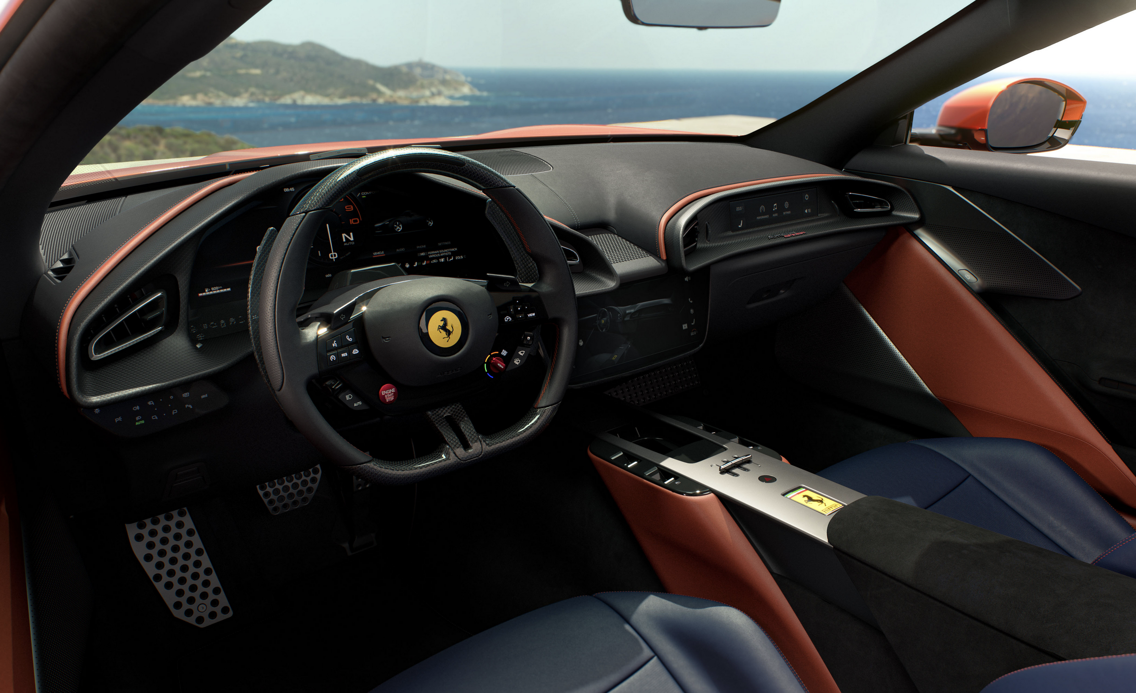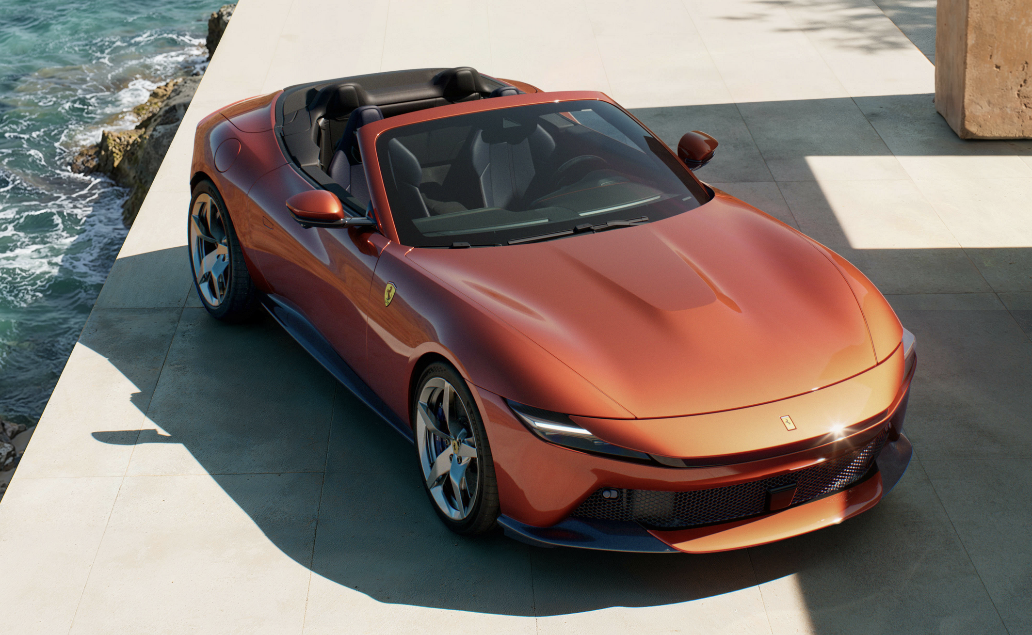 Ferrari Tasarım Merkezi tarafından geliştirilen araç, uzun motor kaputu ve geniş hava girişleriyle ön bölümde güçlü duruş sağlarken, arka bölümde entegre aktif spoyler yüksek hızlarda denge sunuyor. Yeni Rosso Tramonto gövde rengi, Amalfi kıyılarının gün batımından ilham alıyor.