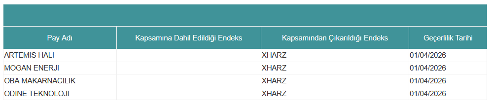Kamuyu Aydınlatma Platformuna (KAP) yapılan açıklamaya göre, endeks değişiklikleri şöyle: