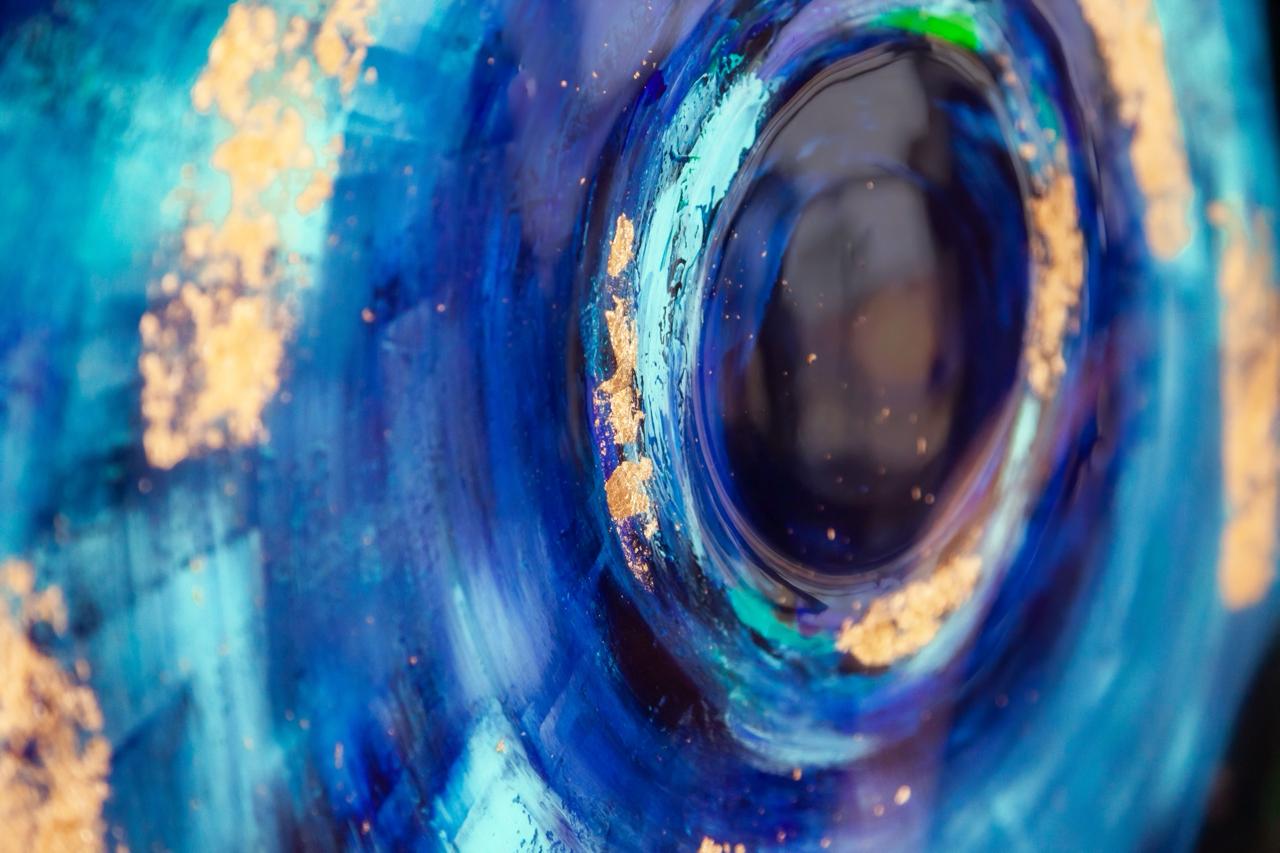 Serginin merkezinde yer alan “Nazar Serisi”, evrenin döngüsel yapısından hareketle insanın tekrar eden düşünce ve deneyimlerini simgeliyor. “Piece of Mars” adlı çalışma da gezegensel çarpışmaları yaşamın kırılma anlarıyla ilişkilendirerek dönüşüm fikrine odaklanıyor.